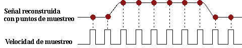 digitales llamados muestras. En la sección horizontal una señal de reloj